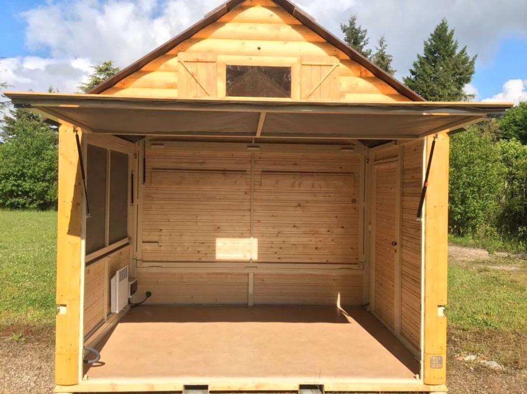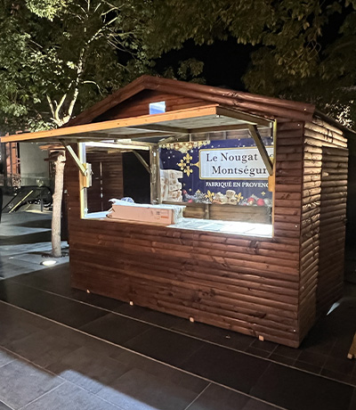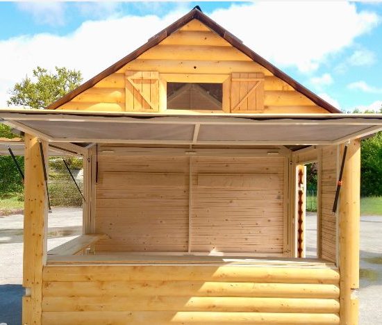 Une fois monté, le chalet est prêt à être utilisé. Tous les modèles permettent une ouverture en façade, type “comptoir” ou une ouverture totale facilitant l’aménagement intérieur du chalet et permettant l’accès du public.